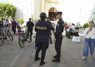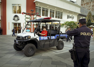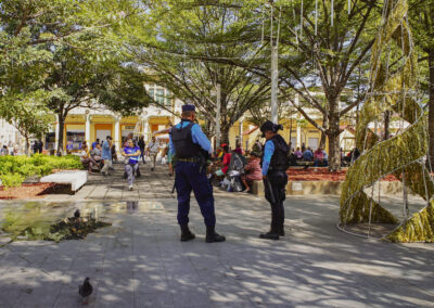 Ylhäältä avautuu näkymä yli kaupungin. Uusia tornitaloja nousee kaikkialle. Perinteiset maissileipäsiä myyvät pupusa-kojut ovat väistyneet amerikkalaisten pikaruokaketjujen tieltä. Kaikkialla seisoo aseistettuja poliiseja. Matkamuistomyymälöissä myydään shottilaseja, joissa on presidentti Bukelen kasvot.