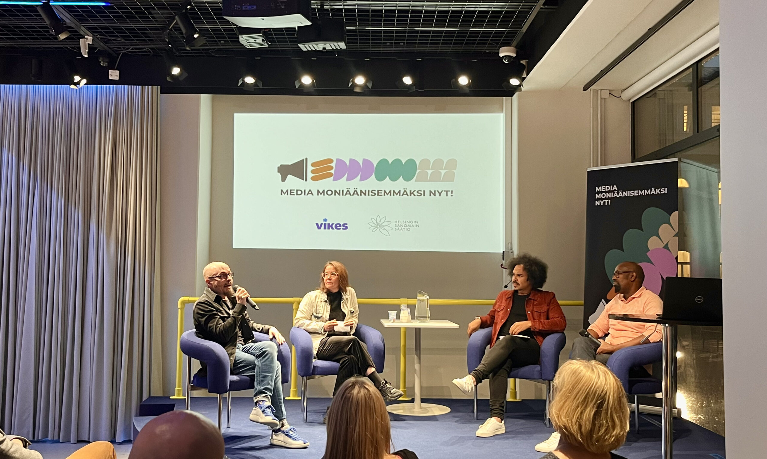 Media moniäänisemmäksi nyt! -hankkeen lanseeraustilaisuus Median museo ja arkisto Merkissä houkutteli paikalle media-alan ammattilaisia päätoimittajista rivitoimittajiin. Juontaja Sean Ricksin johdolla illan keskusteluissa nostettiin kohu pöydälle ja pureuduttiin rohkeasti moniäänisyyden ympärillä käytävään keskusteluun.