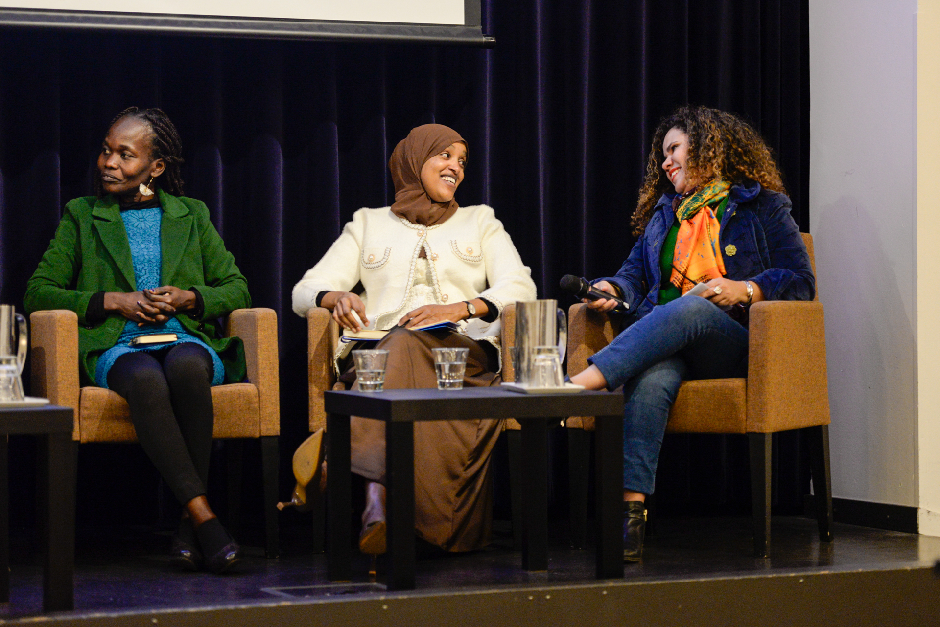Kaksipäiväisen seminaarin ensimmäinen osuus keskittyi naisjournalistien kokemuksiin työelämässä. Juontaja Amkelwa Mbekeni-Kapasen johdolla Ziada, Catherine, Habiba, Maryorit ja Abigail jakoivat kokemuksiaan sukupuolittuneesta häirinnästä, uralla etenemisen esteistä, pienistä palkoista ja arvostuksen puutteesta.
