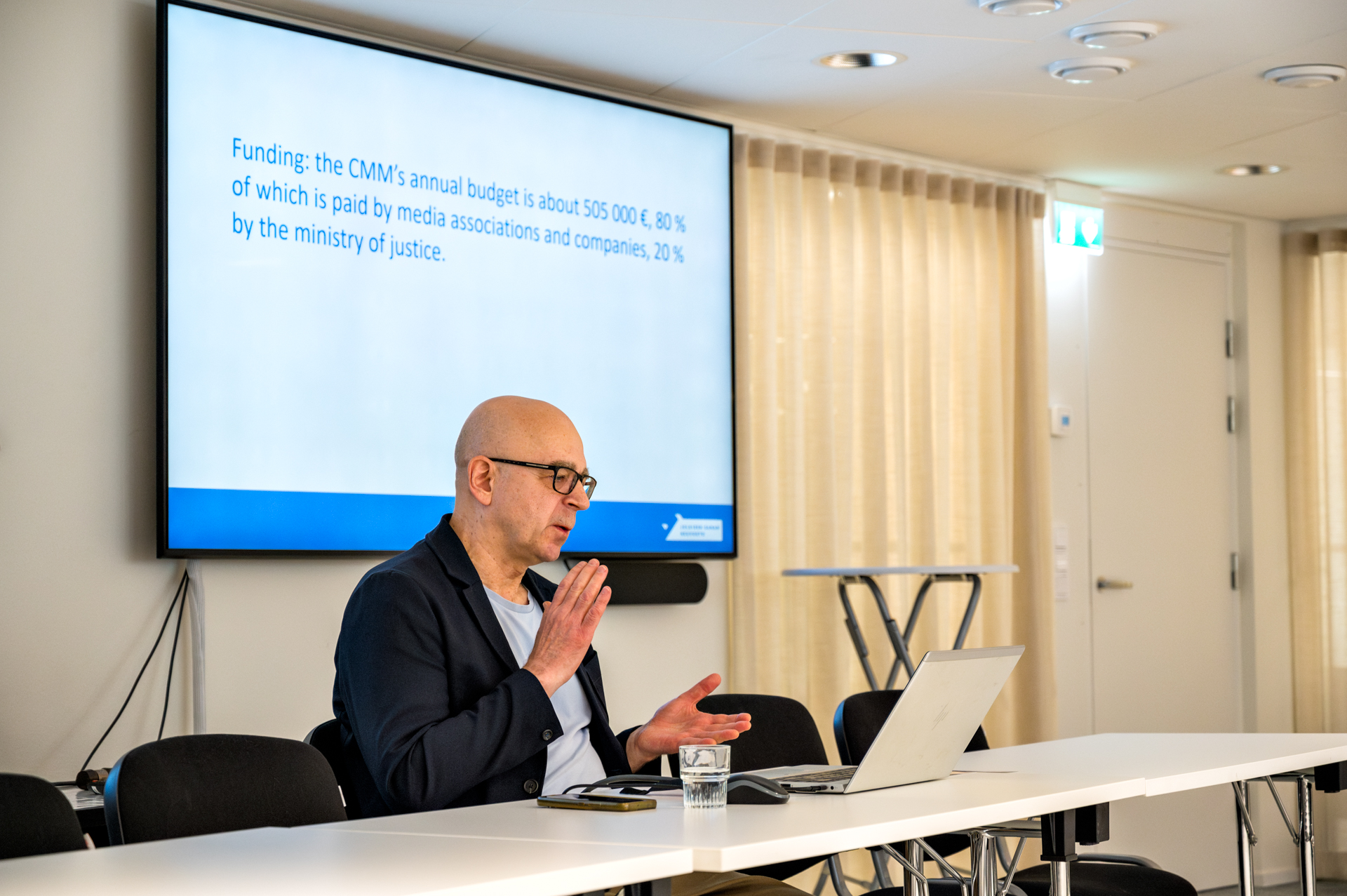 Tiistaiaamuna vieraamme kuulivat esittelyt Julkisen sanan neuvostosta (JSN) ja Journalistiliitosta. JSN:n johtaja Eero Hyvönen esitteli neuvoston toimintaa ja kertoi suomalaisen median ajankohtaisista kysymyksistä. Samalla vaihdettiin tietoja kumppanimaiden vastaavista rakenteista ja niiden kehitysvaiheista.